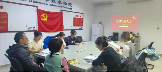 随后,党支部召开党员发展大会。2021级本科生汪璐同志向党组织汇报了自己对党的认识、入党动机、本人履历、家庭和主要社会关系情况,以及需要向党组织说明的问题,两位入党介绍人详细介绍了该同志在考察期间的培养教育情况,学生党支部书记赵韵怡向大会报告对发展对象的政治审查及综合考察情况。与会党员经过充分讨论、发表意见及无记名投票,一致同意接收汪璐同志为中共预备党员。